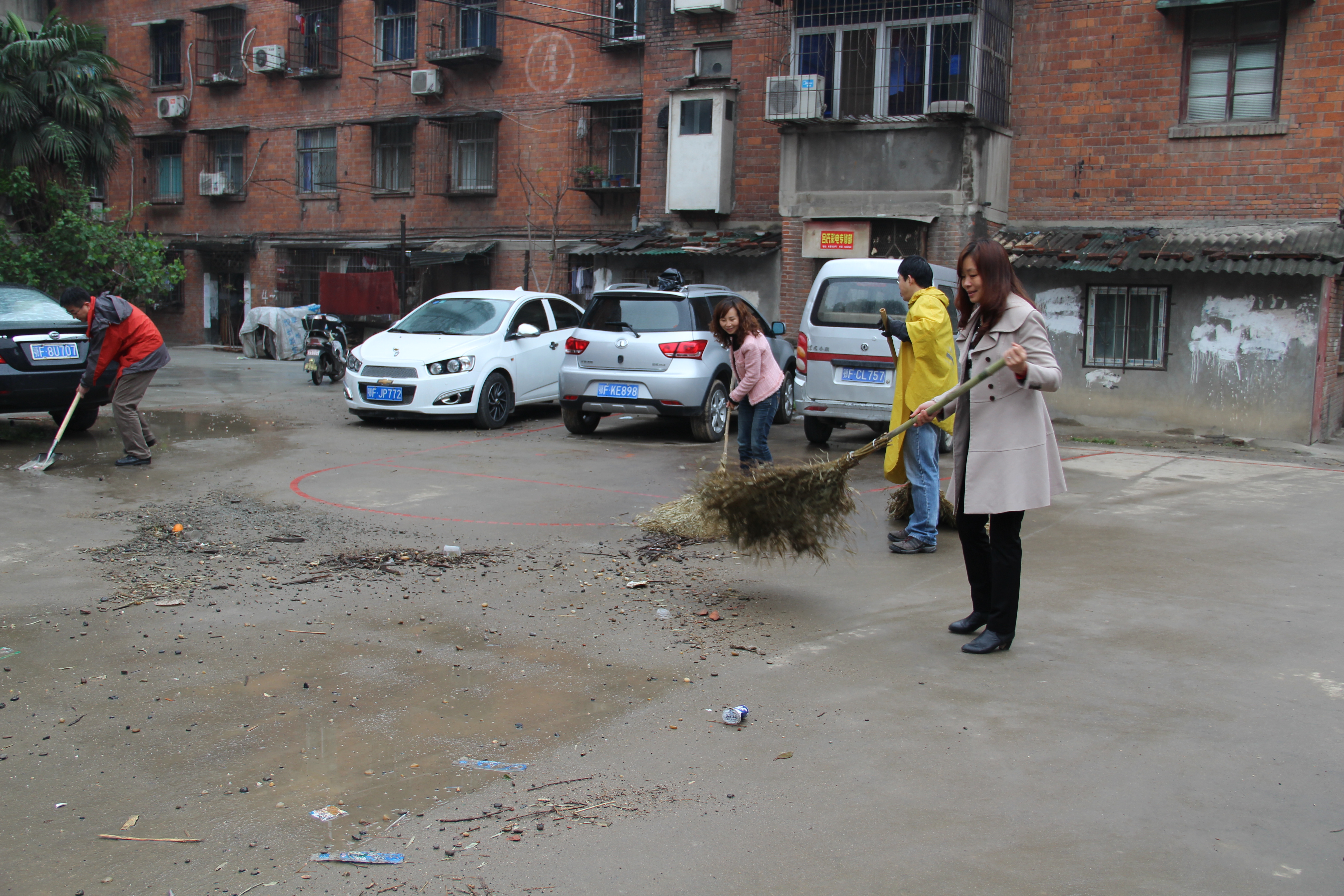 鄂一藥廠家屬院是一個(gè)破產(chǎn)企業(yè)家屬院,沒有專門的物業(yè)管理,衛(wèi)生環(huán)境差,無人管理。在小區(qū)內(nèi),居民樓前垃圾隨處可見,衛(wèi)生環(huán)境又臟又亂。見此情景,大家拿起帶來的工具積極行動(dòng)起來,掃地的掃地,鏟垃圾的鏟垃圾,大家干的熱火朝天,雖然天空飄著小雨,但絲毫沒有影響大家干活的勁頭,經(jīng)過了一個(gè)上午的辛勤勞動(dòng),家屬院的面貌煥然一新。